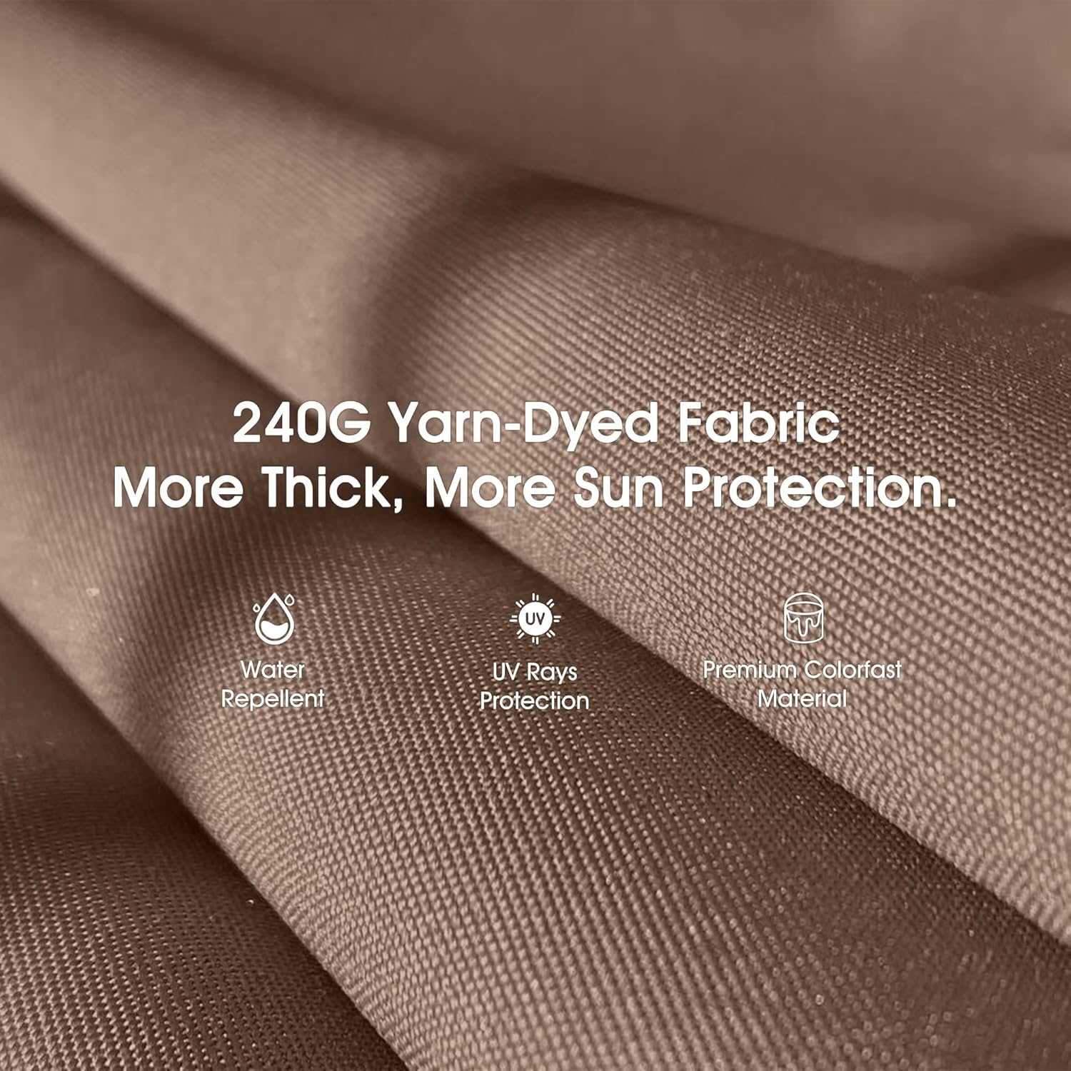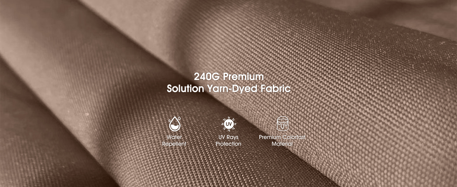 Breathable. UV resistant. water-repellent and fade resistant yarn-dyed polyester fabric. protect you and your family from sunburn. Easy to clean and maintain.