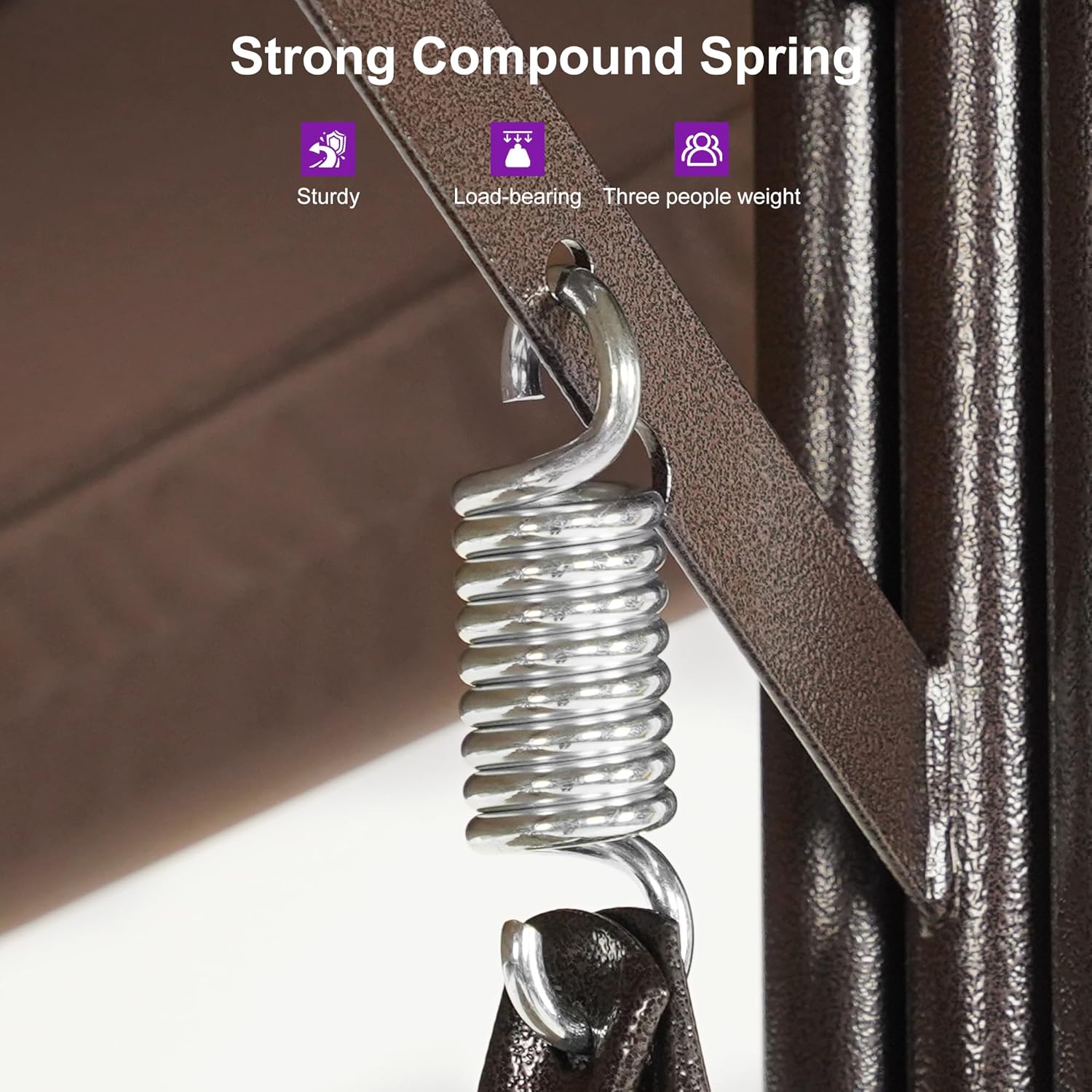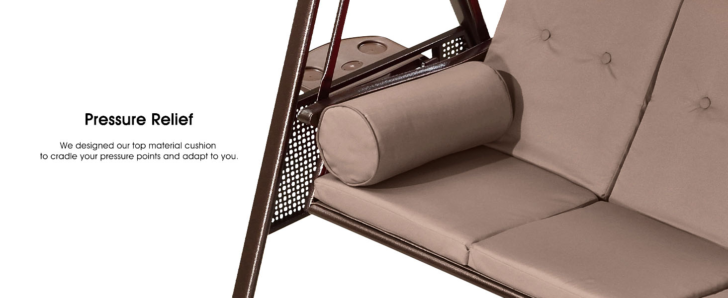 Durable metal with powder-coated finish steel frame. can support up to 750lbs. comfortably swings up to 3 people. Ensuring a smooth. gentle swing experience.