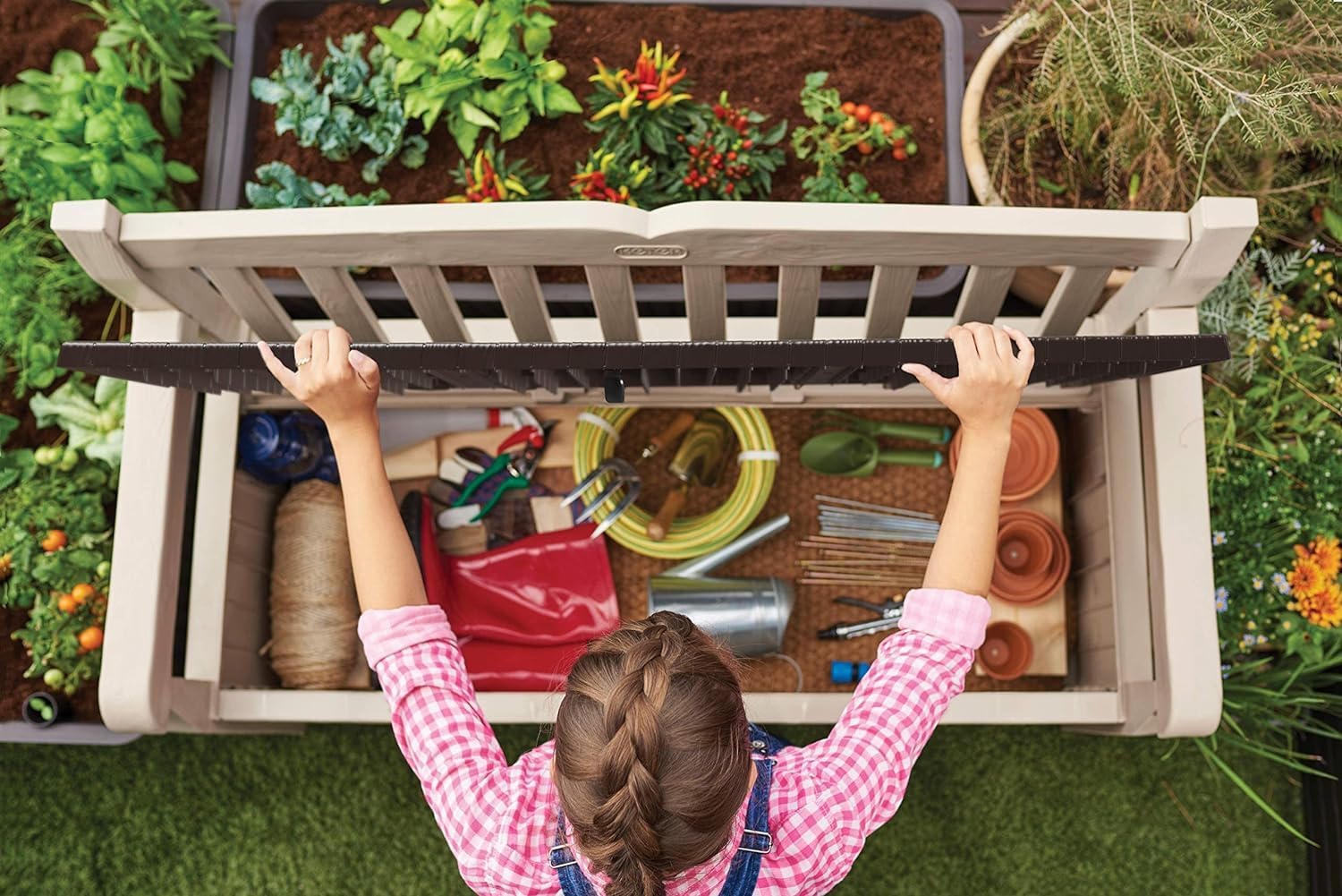 You can never have too much outdoor storage or too many pieces of durable yet elegant outdoor furniture. The fully weather-resistant Eden garden bench storage box is ideal for use outdoors and can provide seating for up to two adults. and store a 265 L/65 G capacity worth of patio accessories. lounge cushions and anything else that needs to be kept dry and well ventilated. As well as its decorative wood - style finishing the Eden bench is also lockable to give you added security and peace of mind.
